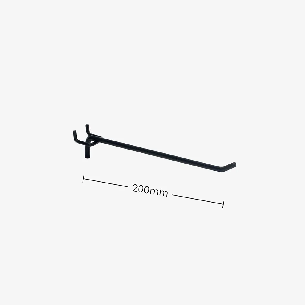 200mm Black pegboard hooks, at 6mm diameter, are strong and specially made for Volcano pegboard gondola shelving. With these hooks, you can rest knowing they will take the weight of your products.