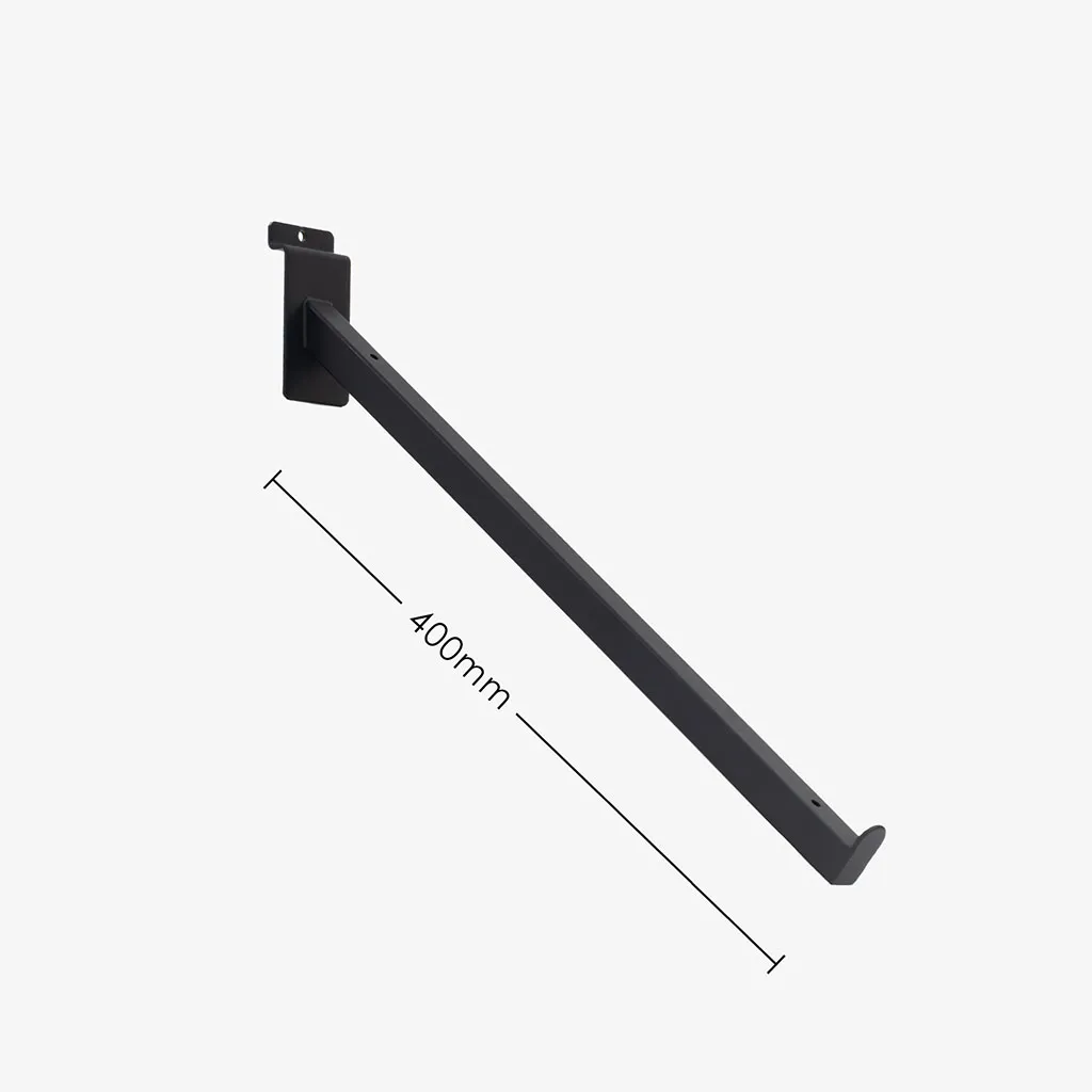 Crafted with durable materials and a sleek black powder-coated finish, this 400mm slatwall bracket is built to last and complement any store decor.