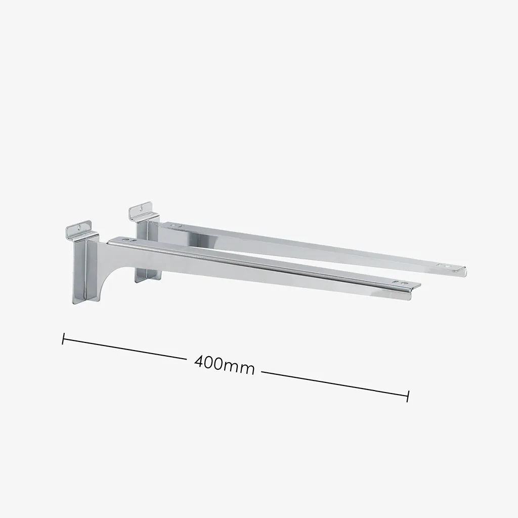 400mm heavy duty chrome slatwall bracket sold in pairs