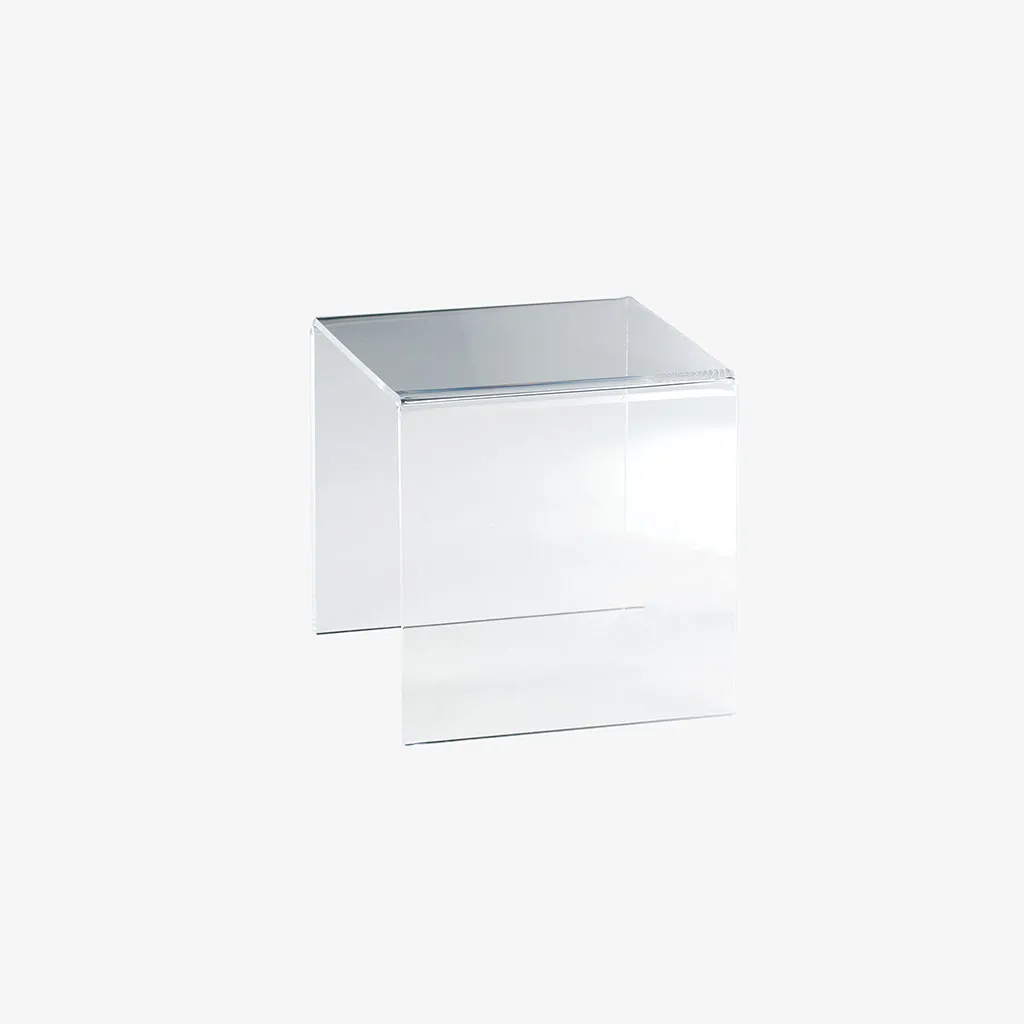 A modern acrylic riser designed to create height and visual interest in any display setting. Its clean, transparent design blends seamlessly into retail, event, or home décor arrangements.