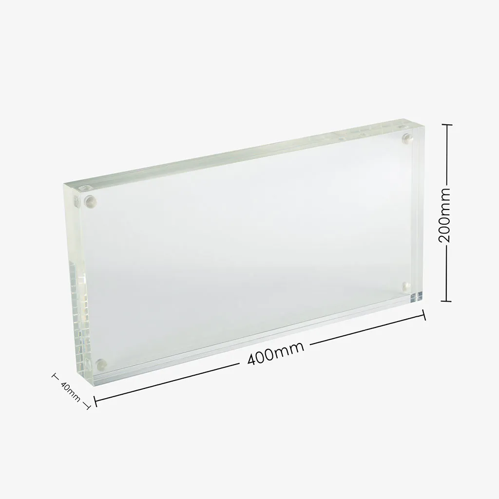 A sleek acrylic photo frame designed for a clean and modern display. Its crystal-clear finish enhances your photos, certificates, or signage while adding a professional touch to any space.