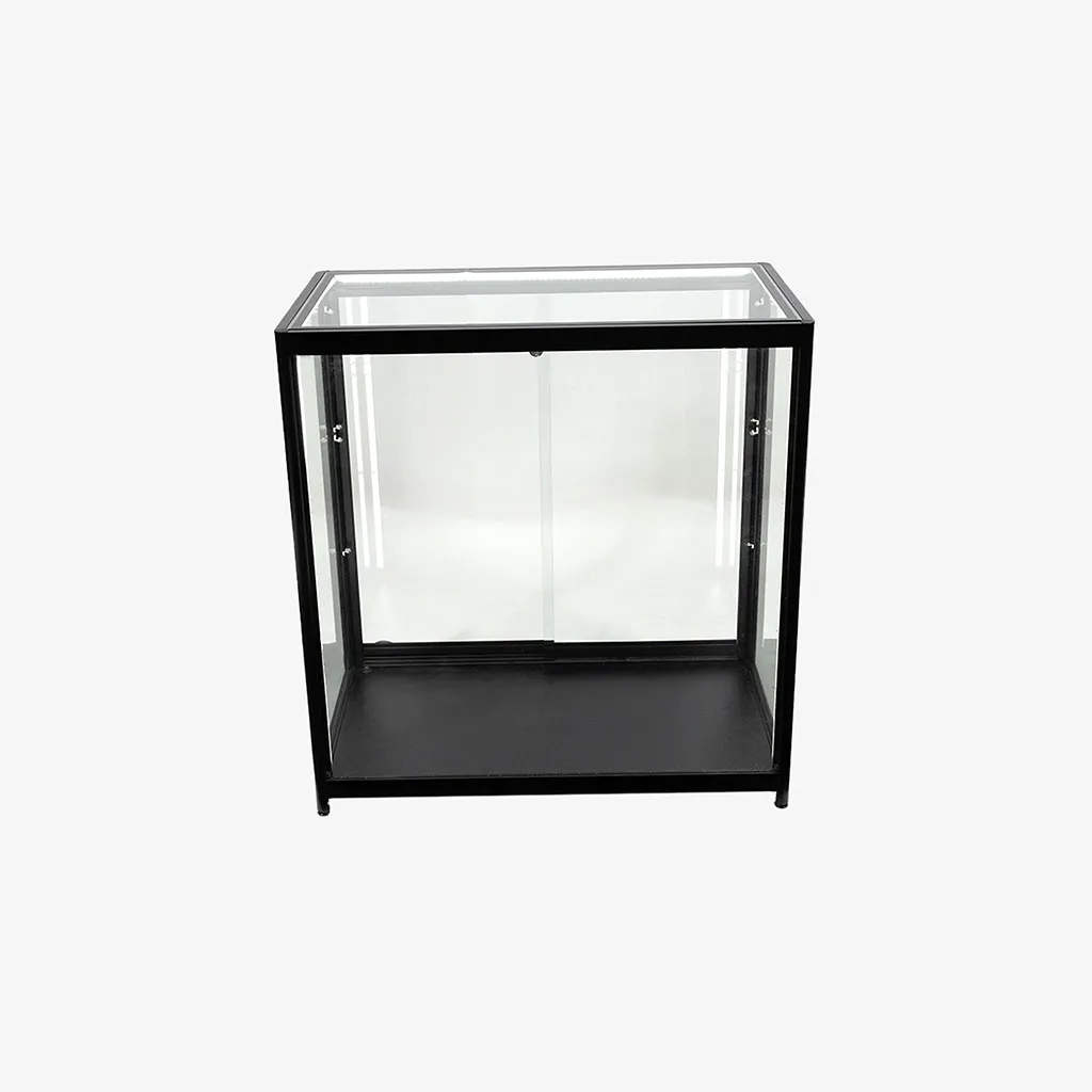 This counter features a black aluminium frame and clear glass panels that create a stunning contrast and showcase your items from all angles.