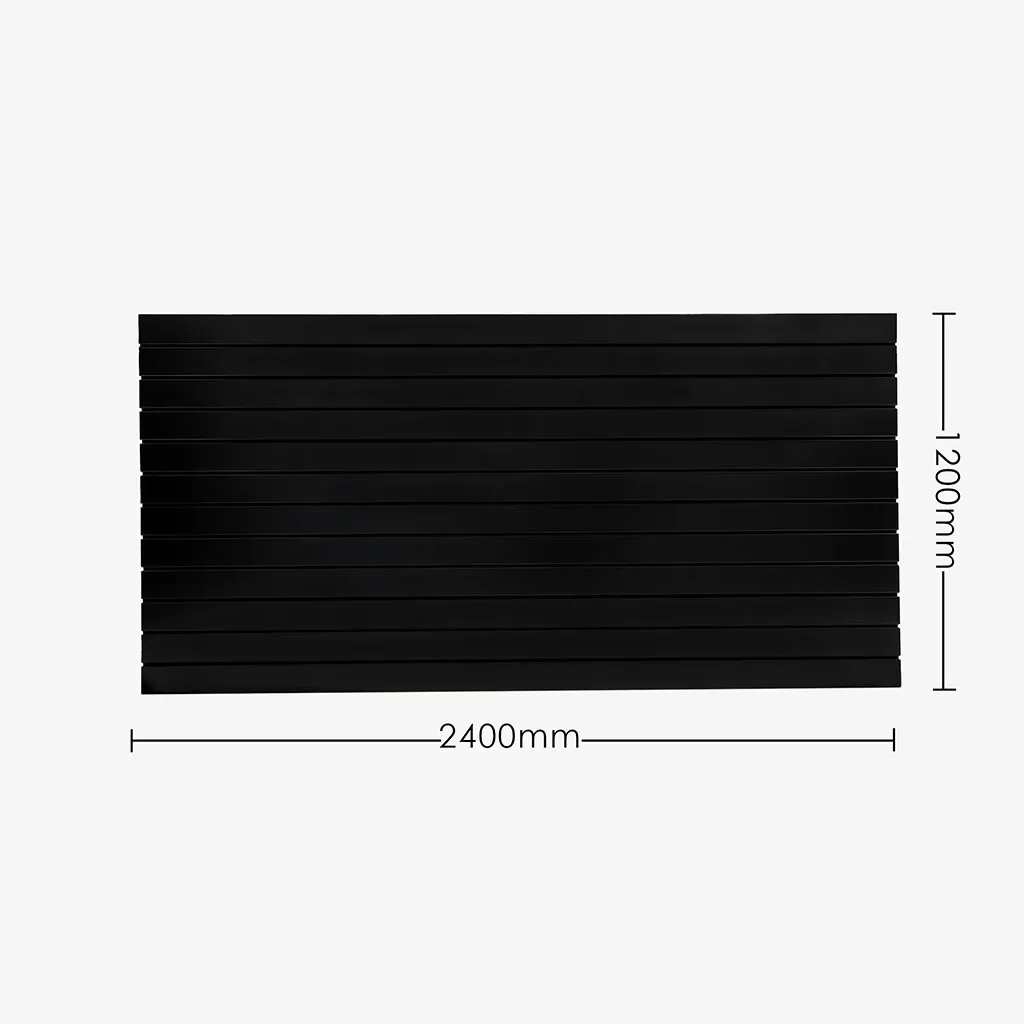 Black matte Landscape/Horizontal slatwall with 100mm spaced grooves with black aluminium inserts.