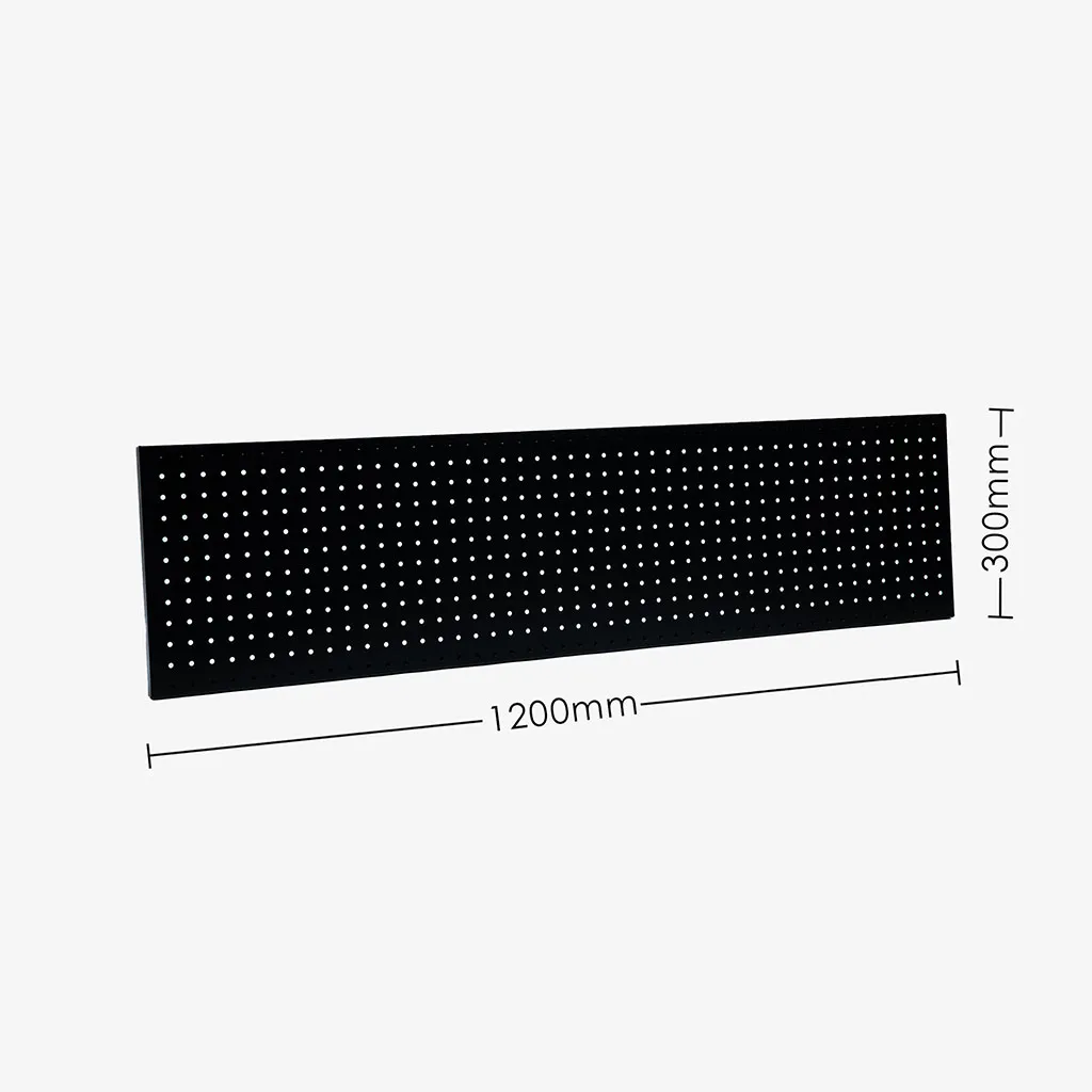 This Black Metal Pegboard is one of our most popular products and offers maximum tool board storage versatility and strength. The attractive, powder-coated 1200 x 300 x 18mm metal pegboard panels can be combined to create an easy storage solution. These attractive Metal Pegboard Panels are also great for heavy duty pegboard storage due to the steel construction which makes them over 10 times stronger than conventional pegboard creating an industrial grade tool storage solution that will last a lifetime.