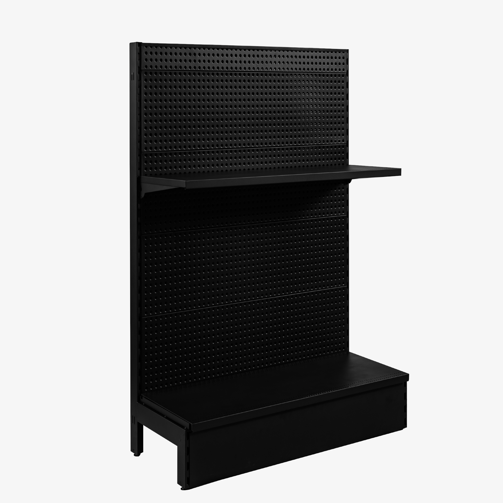 Black Single Sided Volcano Pegboard Gondola Shelving – 900mm Wide Modules