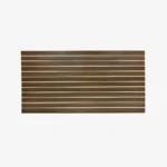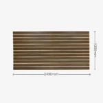 Dark walnut matte landscape horizontal slatwall with white aluminium inserts, 100mm spaced grooves, and 1 half groove, 2400 L x 1200mm H.