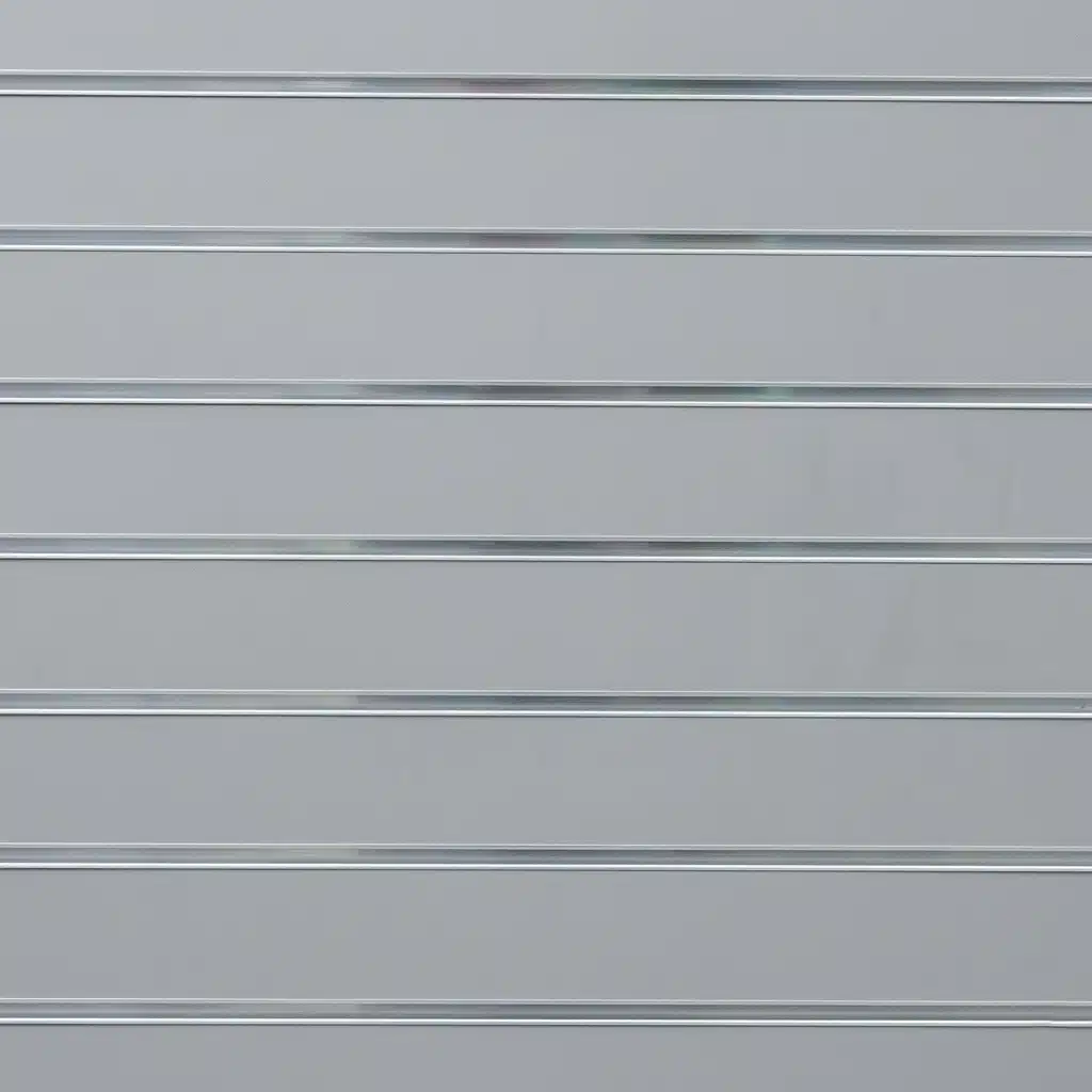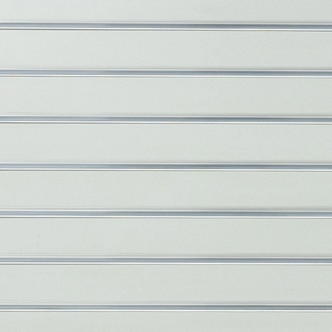 Light grey matte landscape horizontal slatwall with 100mm spaced grooves and 1 half groove.