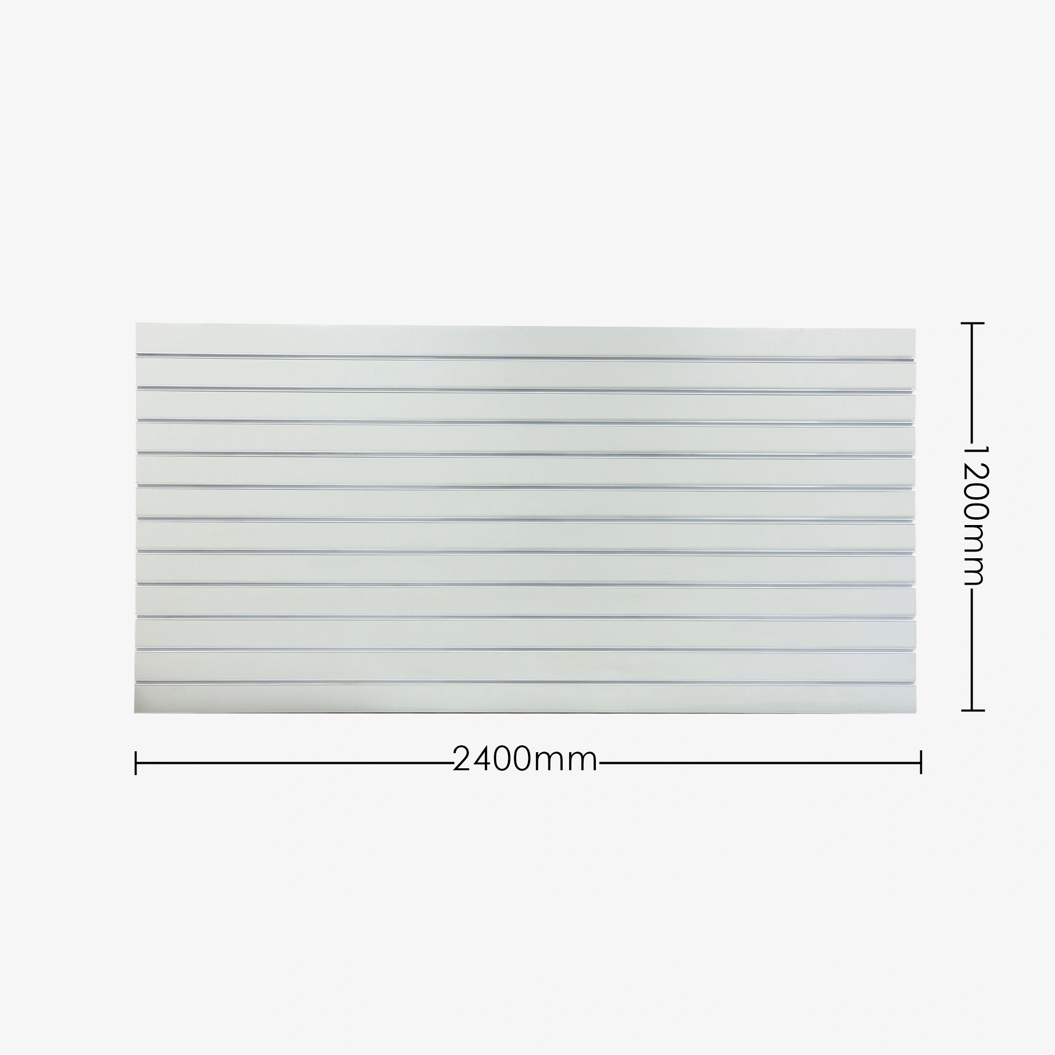 The standard size of slatwall board is 2400mm x 1200mm, with the grooves across the 2400mm width referred to as “Landscape”