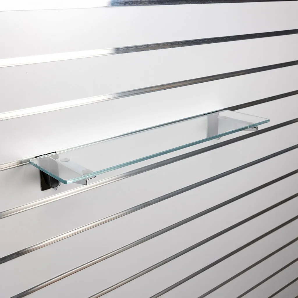 Tempered glass shelves with polished edging for your safety are a stylish way to display your products.