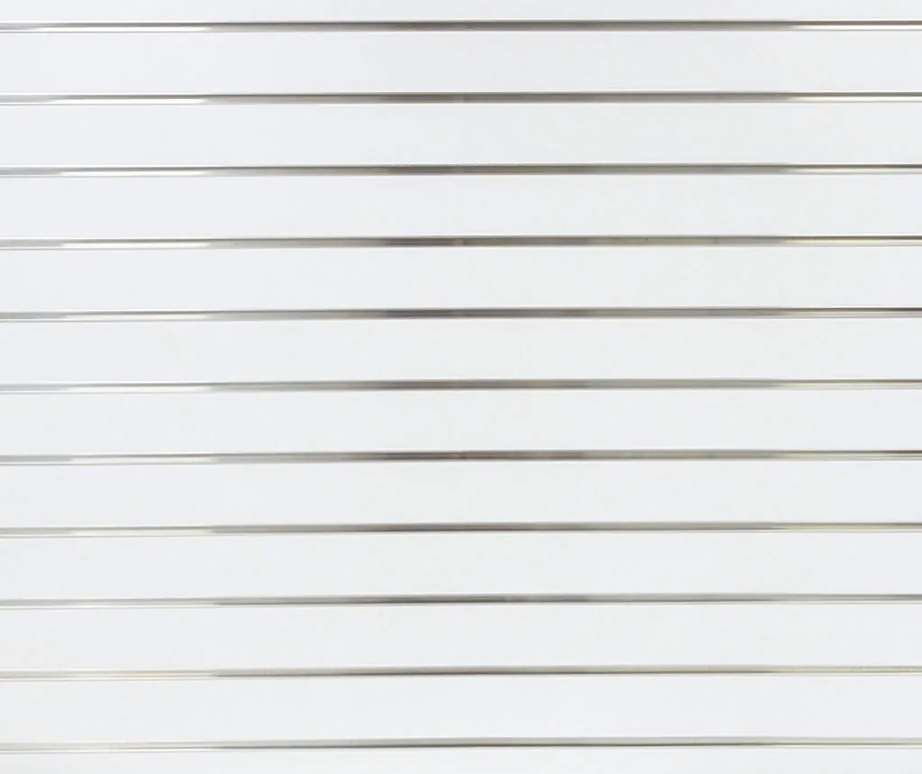 White matte portrait vertical slatwall with 100mm spaced grooves and 1 half groove.